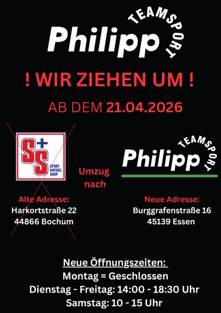 nach der bereits im letzten Jahr erfolgten Übernahme unseres langjährigen Partners S&S Sportartikelshop durch die Teamsport Philipp GmbH wurde nun das bekannte Ladenlokal in der Harkortstraße 26, 44866 Bochum geschlossen.